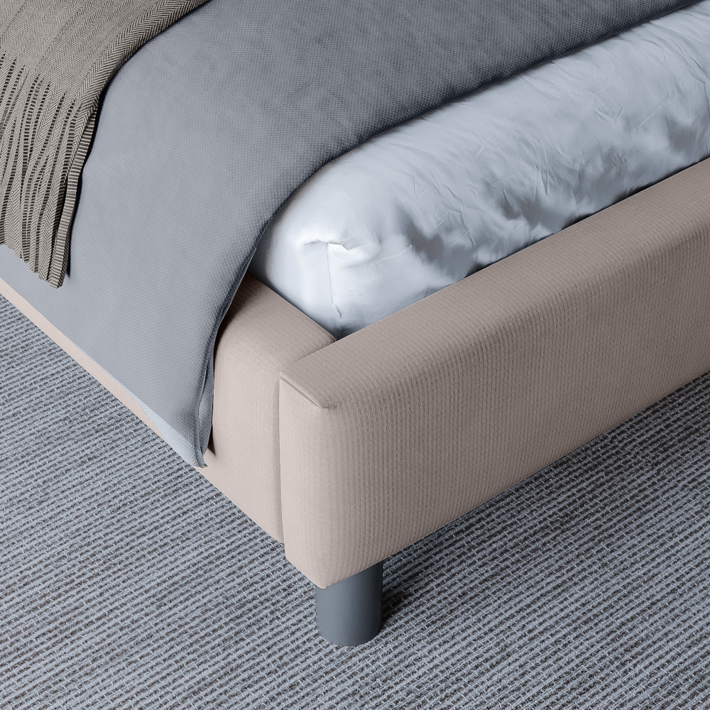 Интерьерная кровать на высоких ножках в современном стиле выглядит гармонично и привлекательно. Модель со встроенным ортопедическим основанием. Кровать без подъемного механизма и бельевого отдела.