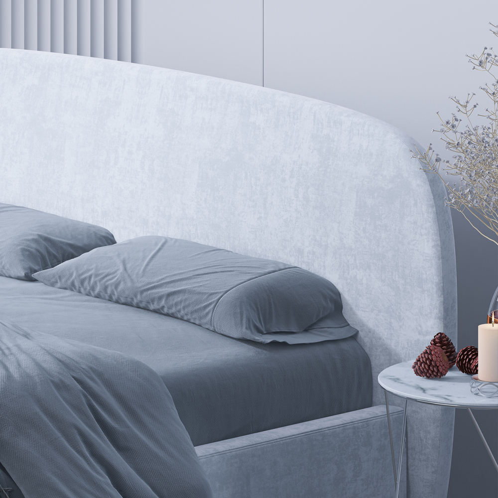 • Кровать добавит легкости вашей спальне благодаря мягкому закругленному изголовью. Данный дизайн актуален и отлично впишется в любой современный интерьер.
